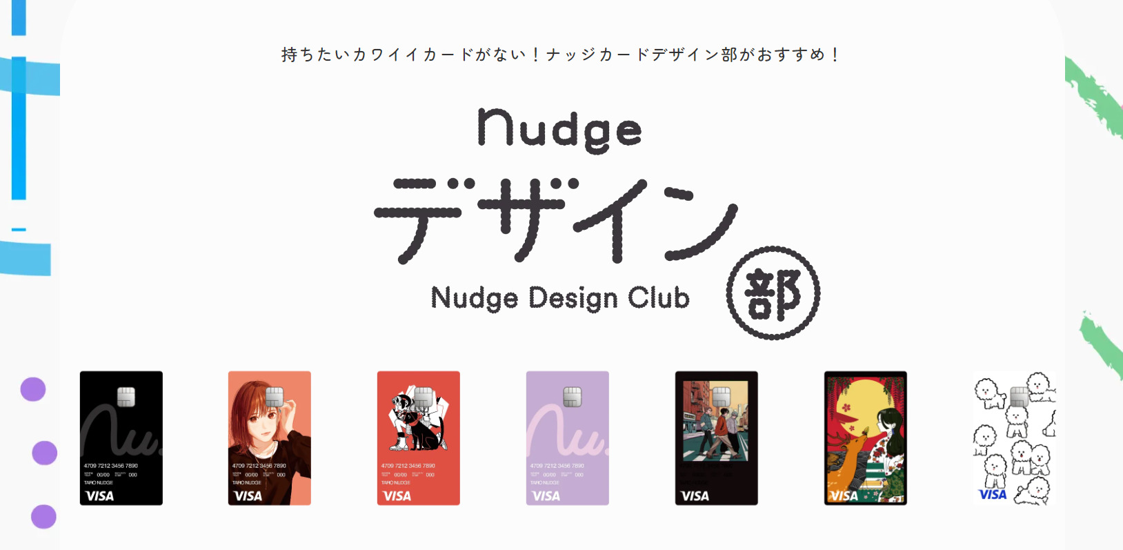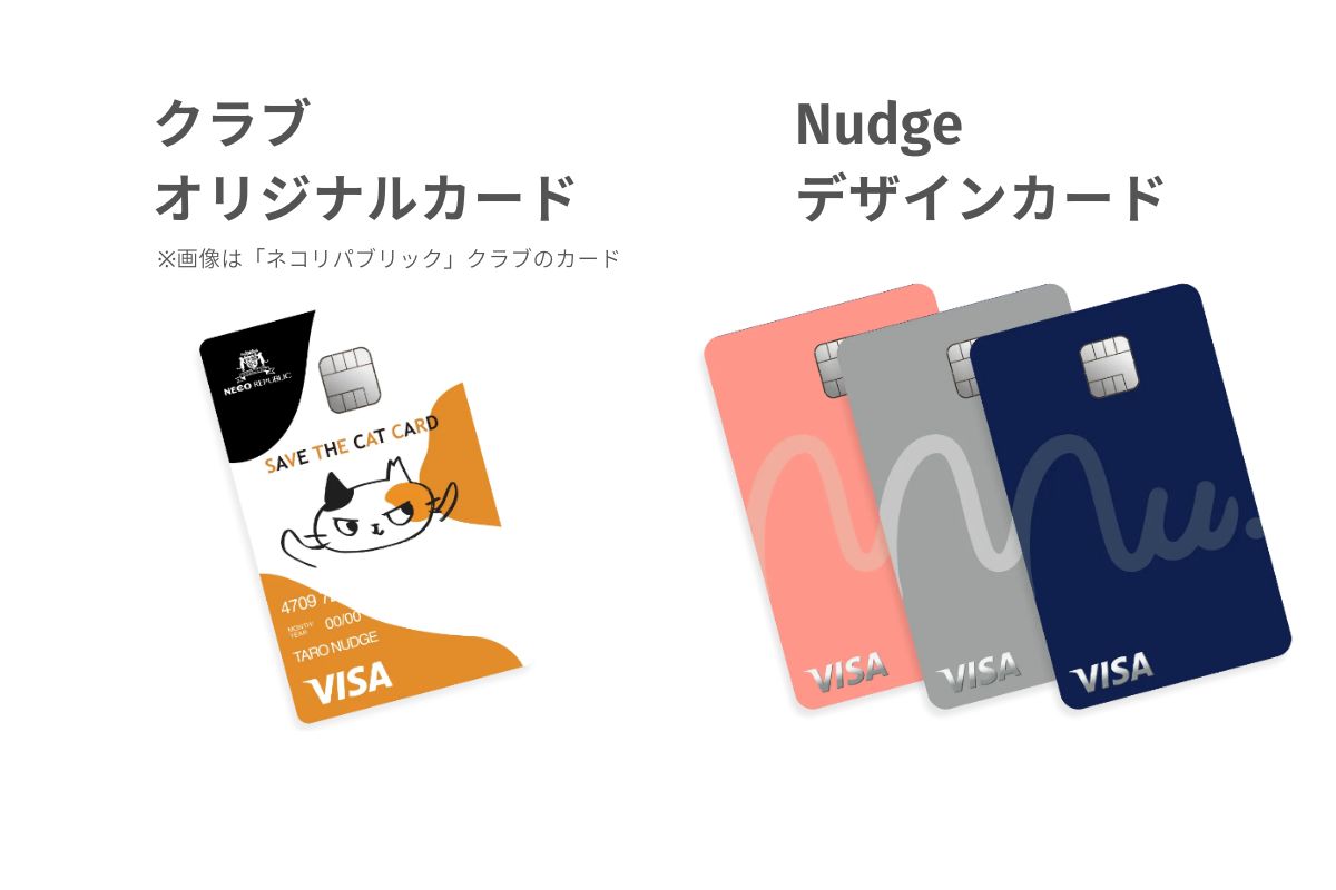クラブ限定の特別なデザインや、無料発行のNudgeデザインのカードをお選びいただけます。