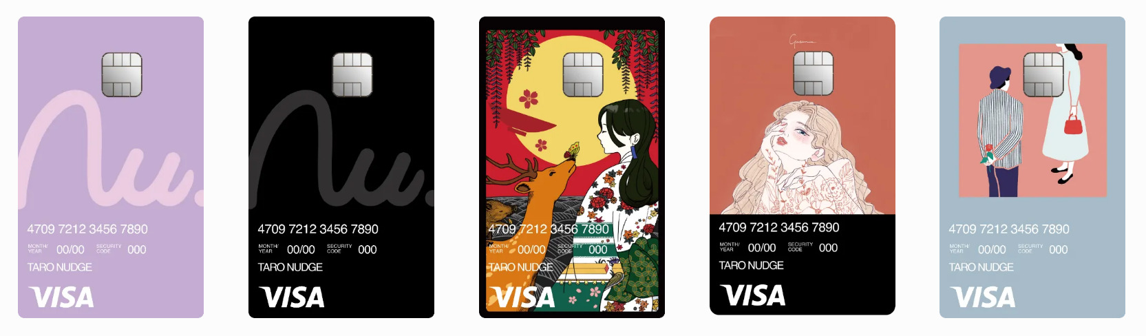 ナッジには、オリジナルデザインのクレカが全24種類あります。