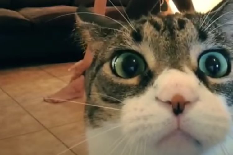 「ニャンだこれ?」とカメラをのぞき込んでます。
