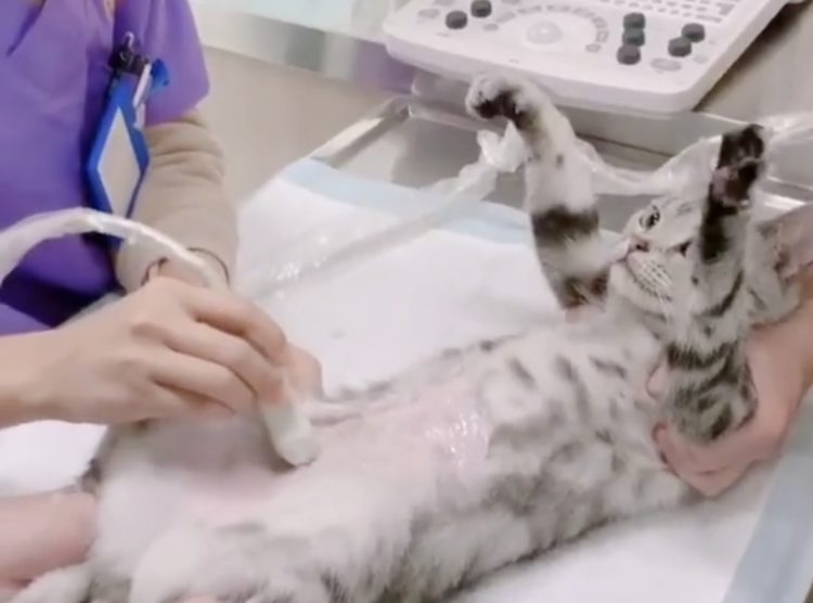 超音波検査を受けている猫さん、可愛い動きを見せてくれた。