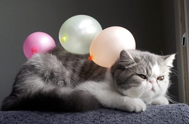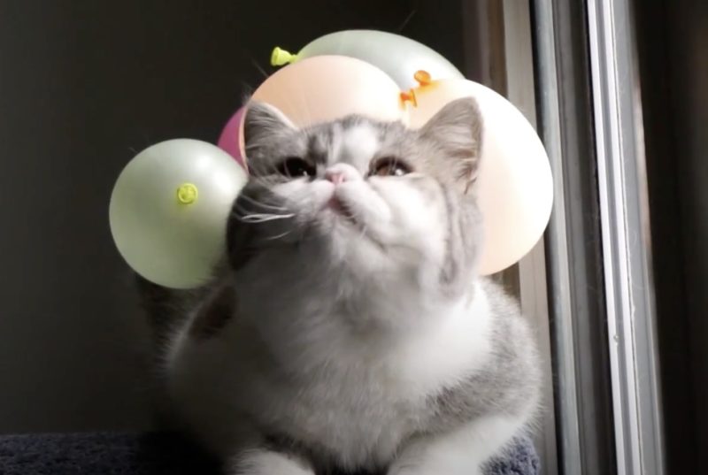 「なんか、背中に違和感が?」と風船に不思議顔ですが