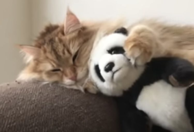 パンダのぬいぐるみと一緒にスヤスヤ。