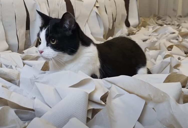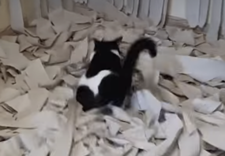 最後は床も全部トイレットペーパーを敷き詰めて、