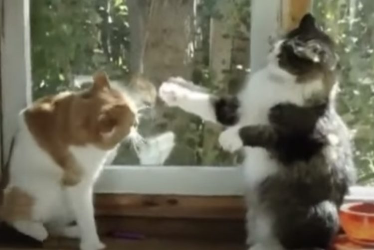 右側の黒毛の猫さんは、なんだかボクシングっぽい。