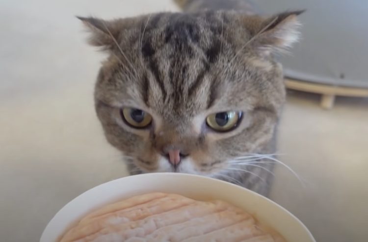 たくさんいる猫さんたちに、1匹づつチーズを披露!