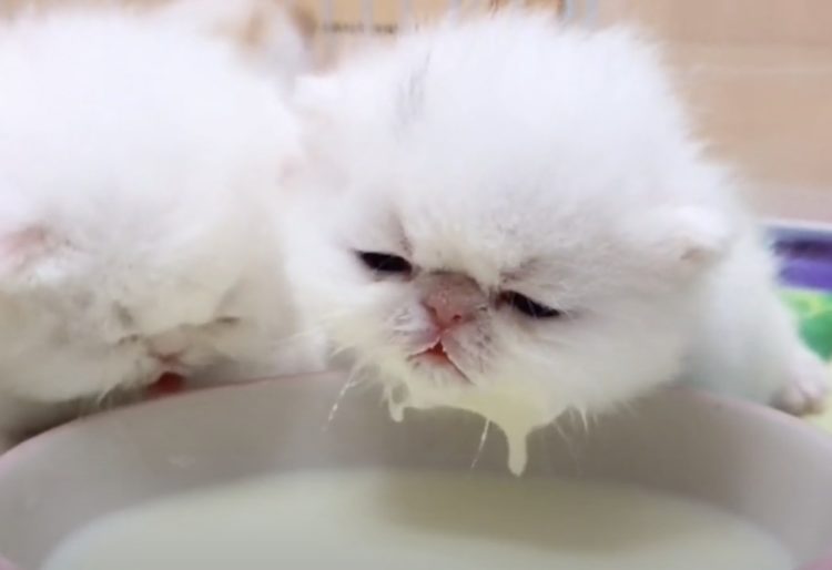 みんな飲むのが苦手(笑)ミルクヒゲをつけてる子猫さん。