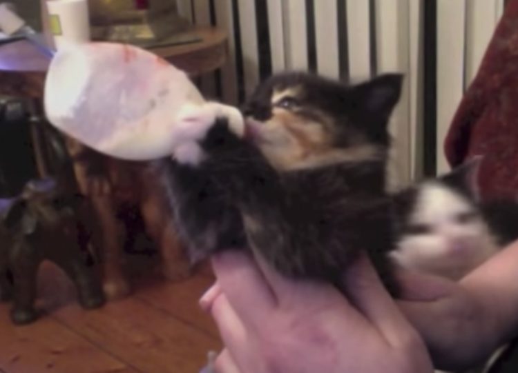 ふと、飼い主さんが哺乳瓶を持つ手を