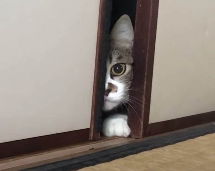 部屋の中を覗いている猫さん。