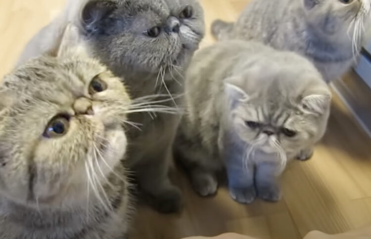 4匹の猫さんたちに手渡して食べさせてあげるのは