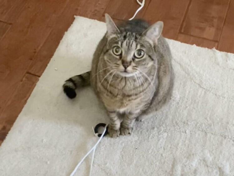 長い紐がついていて、猫さんはこれを
