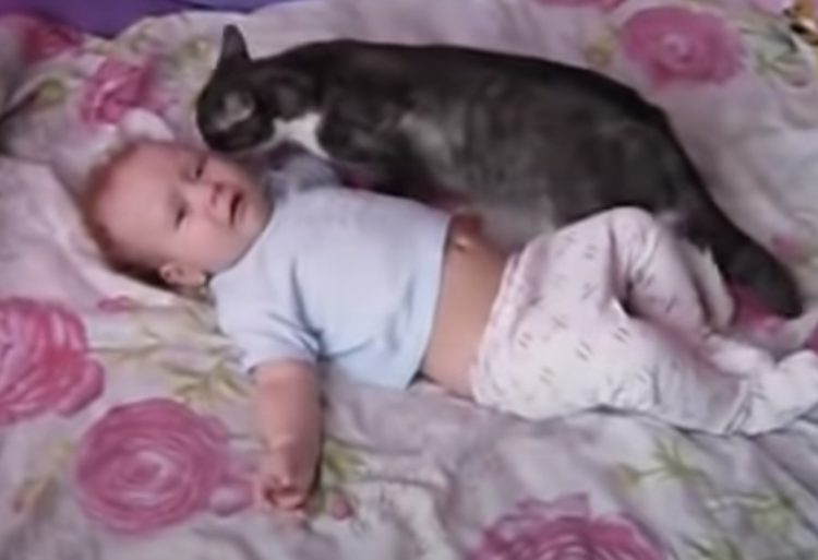 猫さんの声を聞いて泣き止む赤ちゃん。