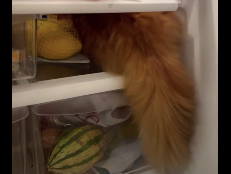冷蔵庫からモフモフのシッポが…勝手に入り込んじゃう猫。