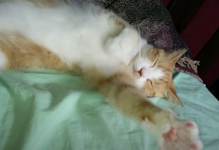 なぜか伸びちゃう!ナデナデされると手足がピーンとなる猫さん。