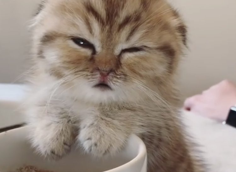 おっと…眠気が…コップのフチでウトウトする子猫さん。