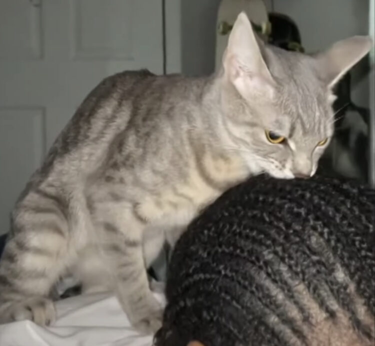 解けない髪の毛に猫さんはムキー!!