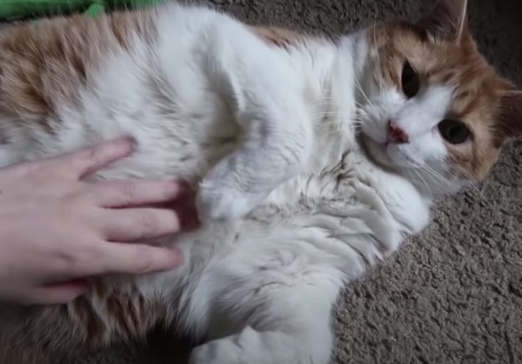 飼い主さんがお腹に手を伸ばすと…