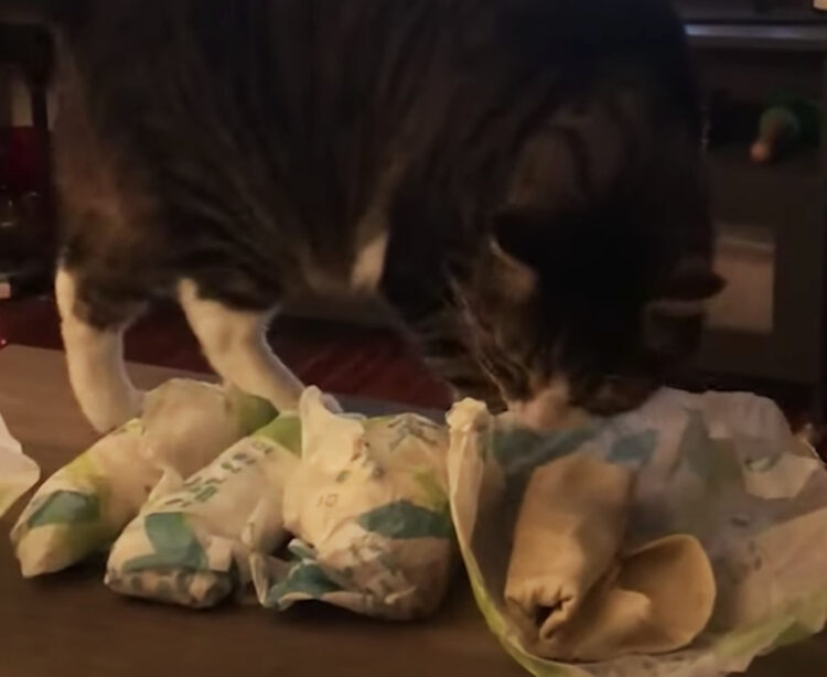 とても嫌そうな顔で何度も隠そうとする猫さん。