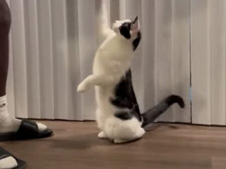 二本足で立ち上がってハイタッチまで…