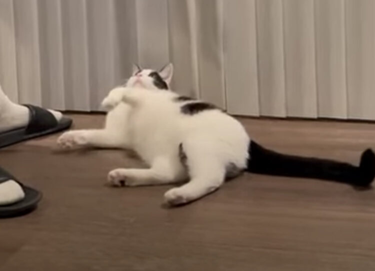猫さんは、「とりあえず倒れればいいのかな?」と