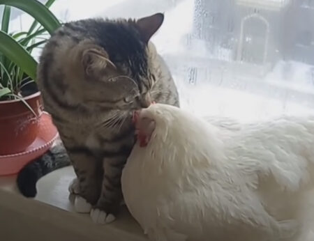 こちらはどちらも大きくなった猫さんと大きくなった鶏さん。