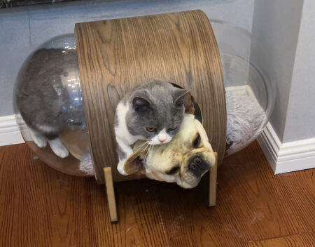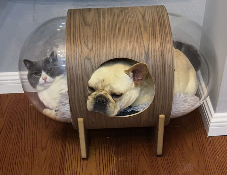 猫用ベッドは透明のカプセル型で