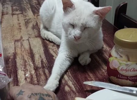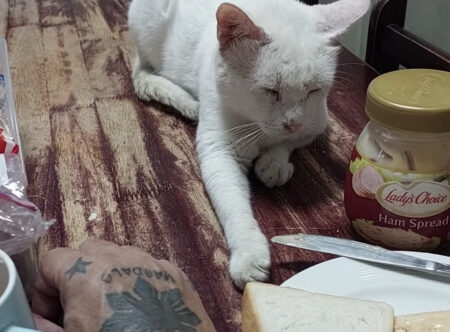 猫さんの大好きなハムとマヨネーズのサンドイッチ!!