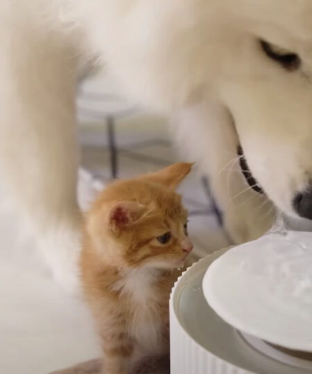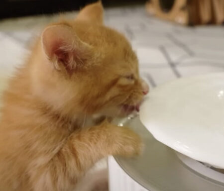 今のうちだ〜!!と一気にお水を飲む子猫さん♪