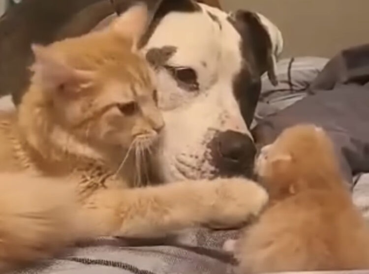 お母さんと犬さんがほっぺをぴったりとくっつけあって、