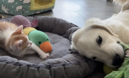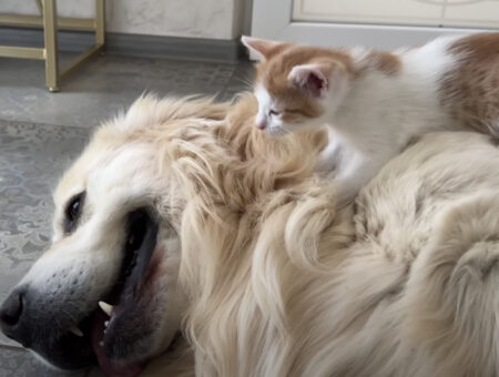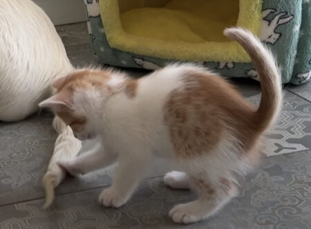 犬さんと遊ぶのが大好きな子猫♪ 今日も3匹で仲良く遊ぶよ!