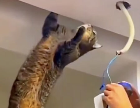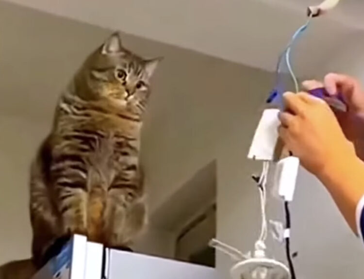 じぃ〜っと作業員の男性の手元を見守るのでした。