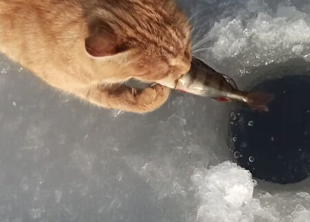 氷上で釣りをしていたら…獲物を横取りされちゃった!