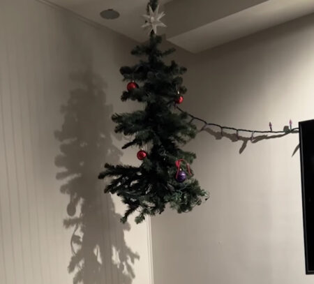 クリスマスツリーを天井からぶら下げること!