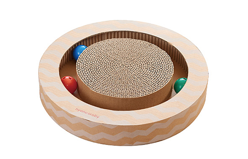 「ニャンコロビー」は、愛猫たちが最高に楽しめるように開発された愛猫専用の爪とぎ付きボールトイ。サークルをくるくるまわる3色のカラフルなボールを追いかけて遊びます。赤色と青色のボールには鈴が入っていて鈴の音がしたり、緑色のボールにはキャットニップが入っていて猫の好きな香りがします。上部は爪とぎ素材を使用しており、爪のケアにも。「追う」「見る」「聞く」「嗅ぐ」「触る」といった、遊びで五感を刺激します。