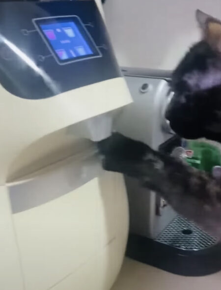 あったかいお水にしようか二ャ〜。機械を使いこなす賢い猫ちゃん!
