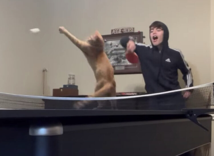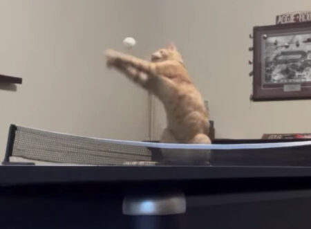 意外と卓球が上手だった猫さん。