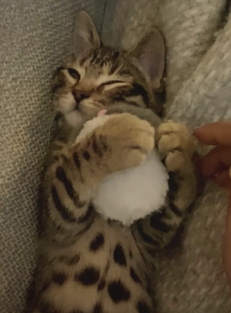 ぬいぐるみに抱きついて寝るのが大好き♪