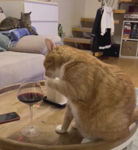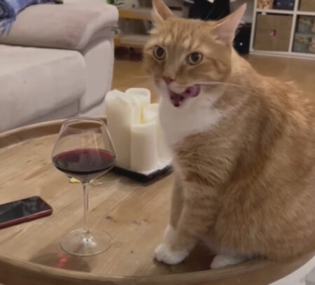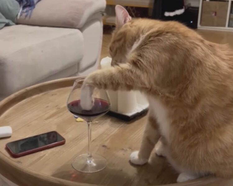 猫「ワインうまうま〜」 え!? 飼い主のお酒を盗み飲み?