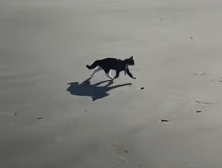 浜辺を走る男性と…猫!?