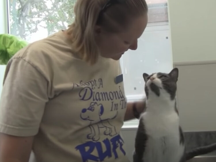 飼い主さんになでて欲しいとおねだりする猫さん。