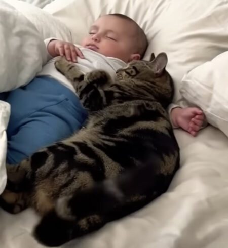 そして、猫さんの腕は赤ちゃんのことを
