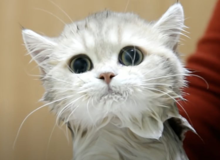 ブリティッシュショートヘアの子猫、初めてのお風呂!