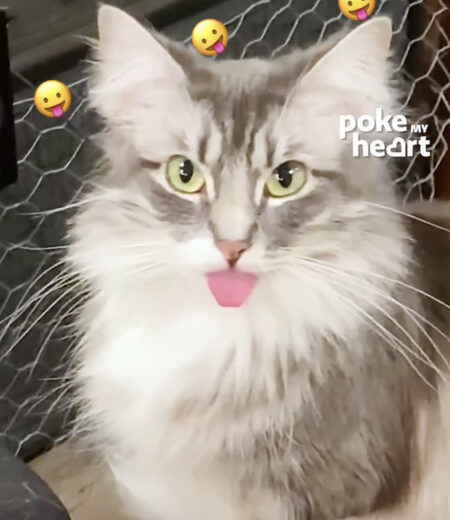 あの絵文字そっくり! 飼い主さんに舌を出して…べーっする猫。
