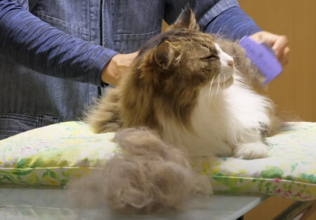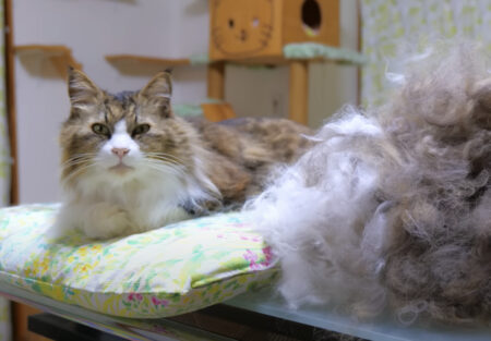 大量の毛を毛づくろいで、