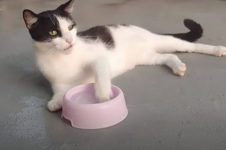 なんだかやる気が起きない猫さん、面白い方法で水分補給。