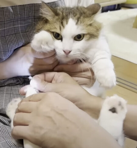 肉球が隠れちゃった猫の秀吉くん。