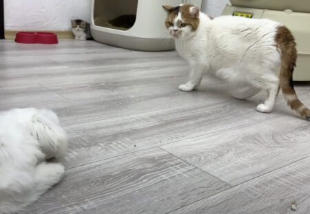 子猫さん、思いっきり遠くに隠れちゃいました。