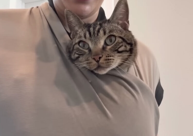 そこで考えたのが、赤ちゃん用の抱っこひもを使って