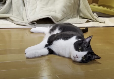 「ちょっと暑いにゃ、でもまた入ろ」こたつに出入りして「ととのう」猫さんたち。