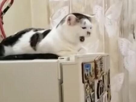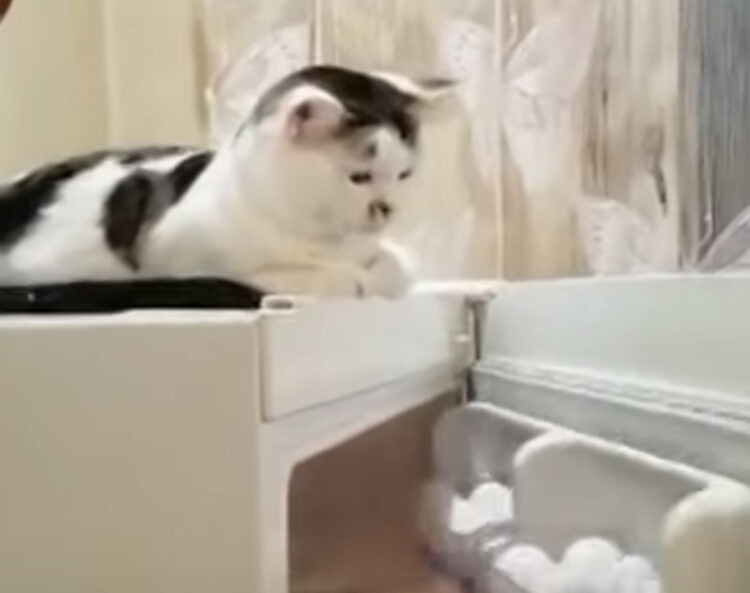 飼い主さんが一度開けた冷蔵庫を閉めようとすると、