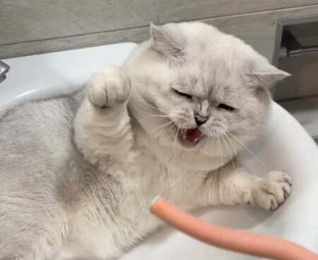 飼い主さんに本気で猫パンチ! くつろぎタイムを邪魔されて怒っちゃった!